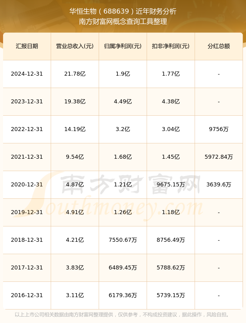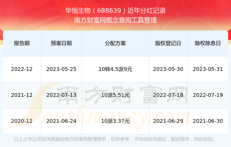 華恒生物歷年分紅派息情況如下表所示: