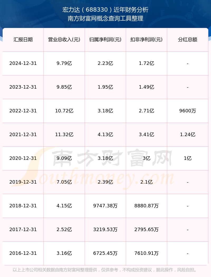 宏力達公司2024年實現營業收入9.79億元,同比增長-0.68%;凈利潤2.23億元,同比增長14.46%;毛利率45.73%。