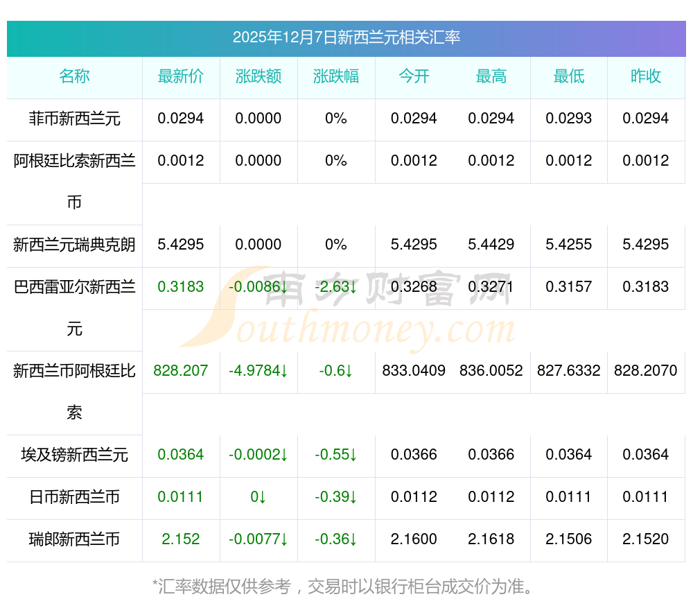 2025年12月7日新西蘭元相關(guān)匯率查詢