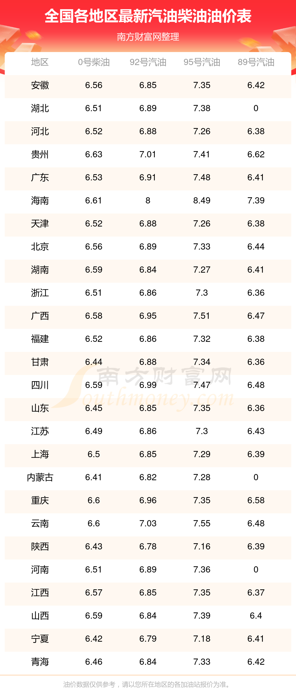 以上數據僅供參考,請以您所在地區的加油站實際售價為準。南方財富網發布此信息的目的在于傳播更多信息,對使用該油價信息所導致的結果概不承擔責任。