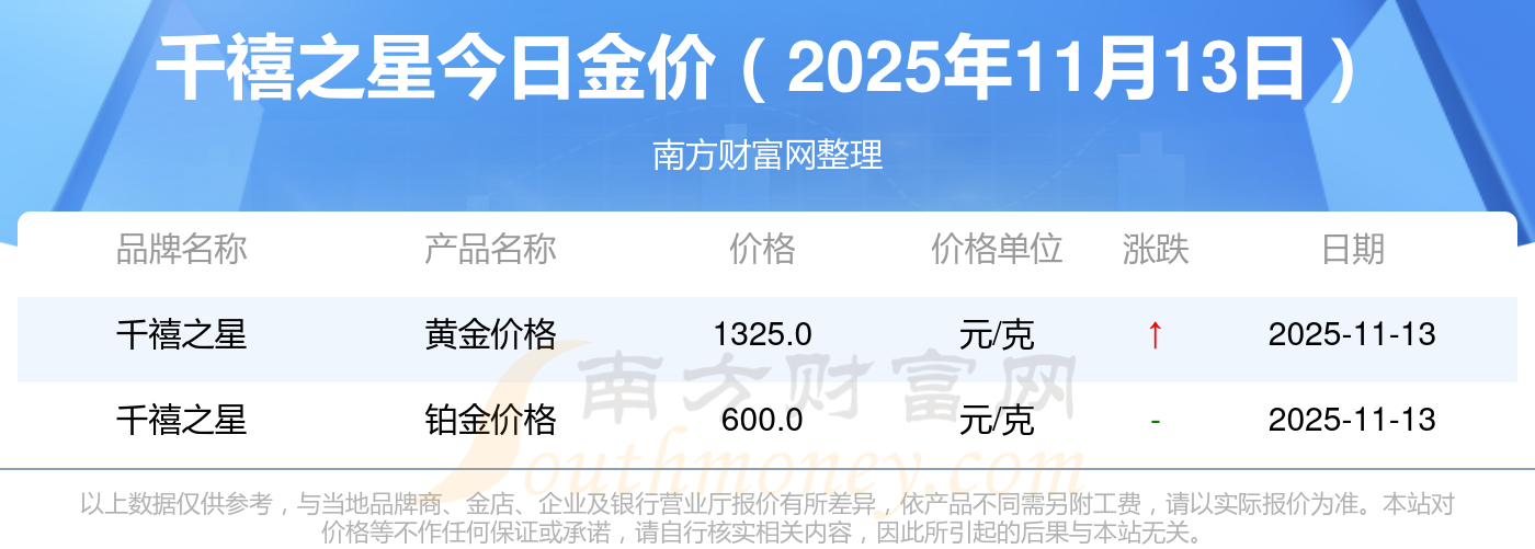 以上數據僅供參考,與當地金店有所差異,請以實際價格為準。