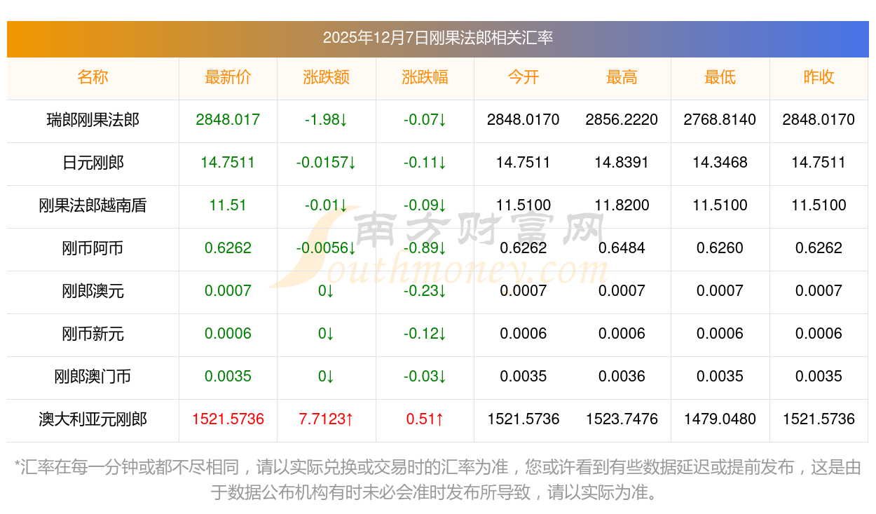 南方財富網為您提供剛果法郎對瑞郎匯率最新價格詳情。