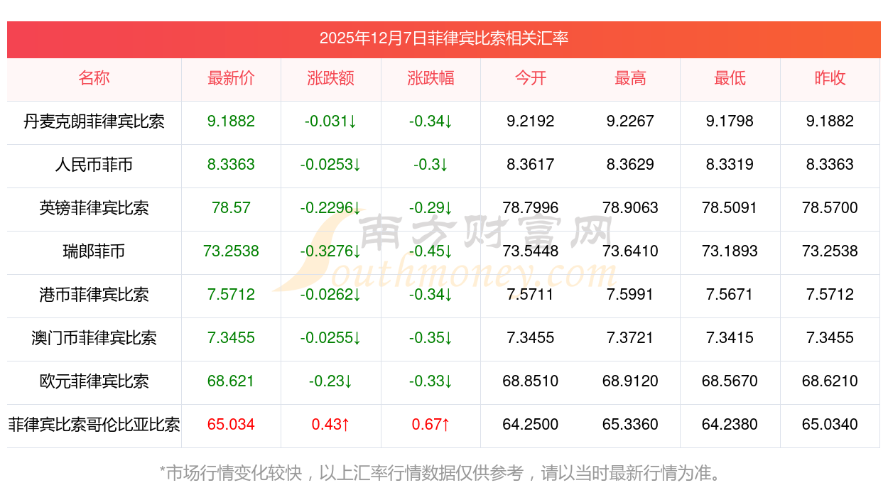 南方財富網為您提供菲律賓比索對南特匯率最新價格詳情。