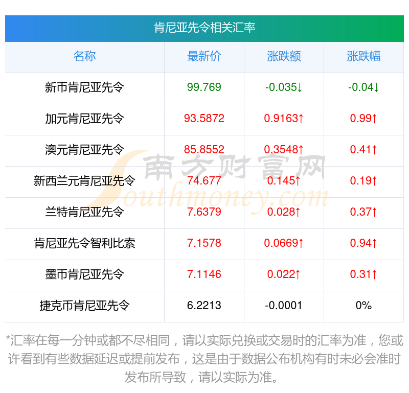 南方財富網為您提供肯尼亞先令對新臺幣匯率最新價格詳情。