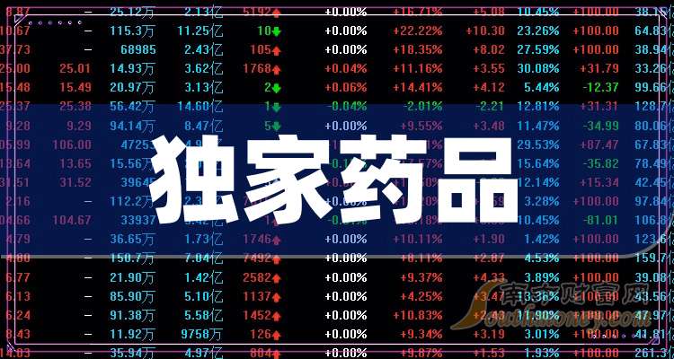 南方財富網概念庫財報工具數據整理,截至第三季度,獨家藥品概念股每股收益排名情況如下: